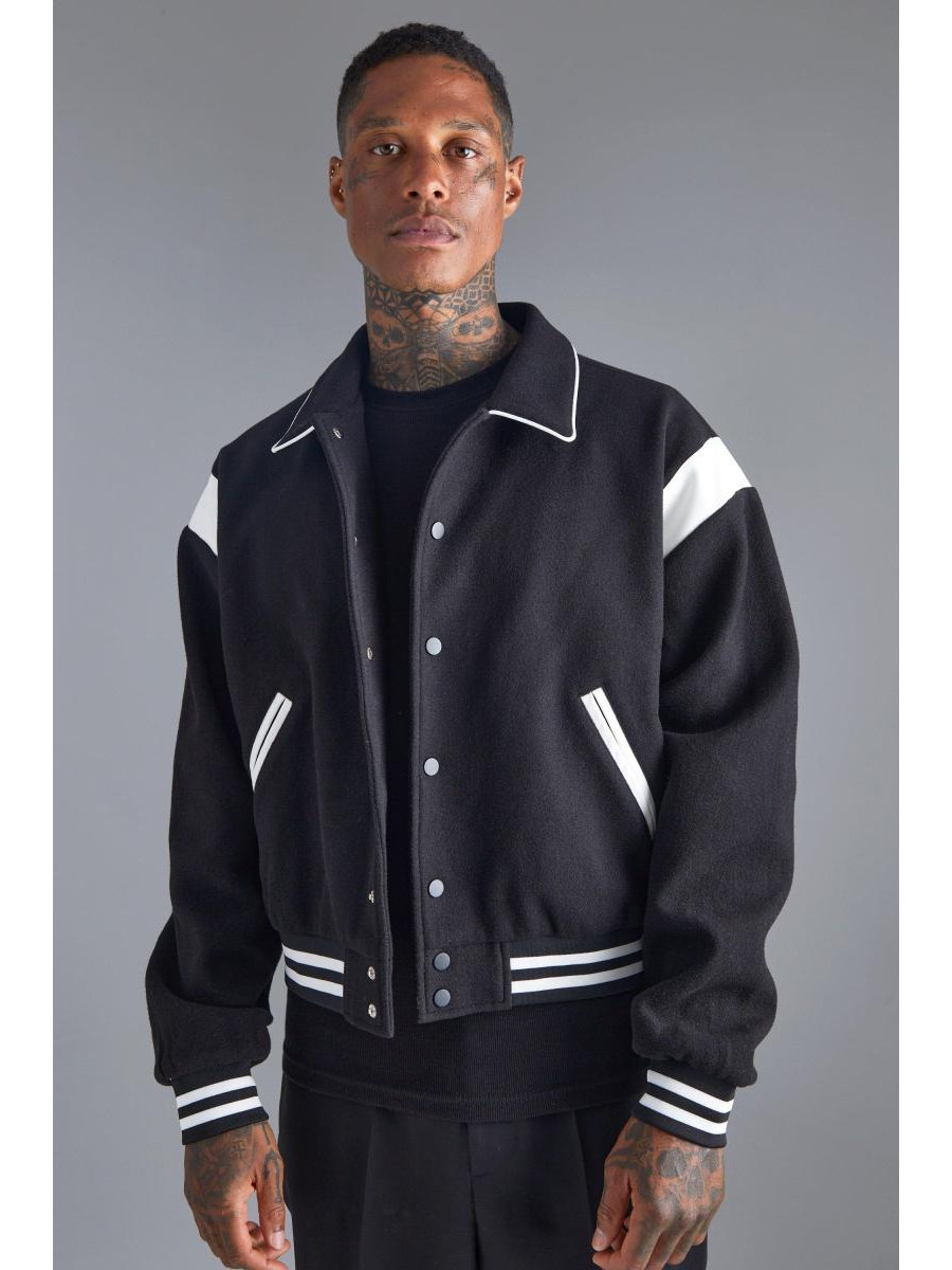 Боксі Мелтон Бомбер -куртка з контрастними оздобленнями