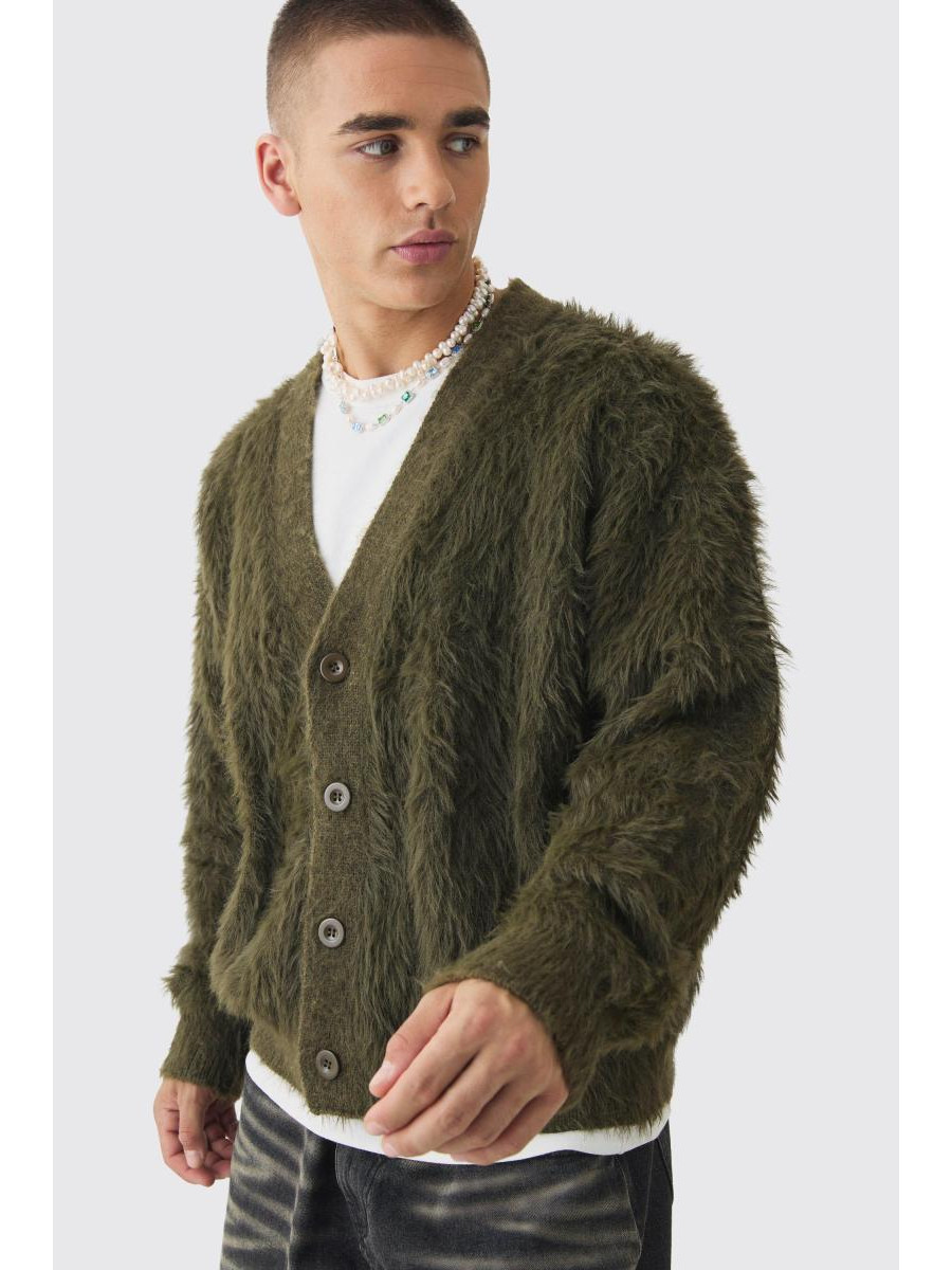Негабаритний боксерський супер пухнастий трикотажний кардиган