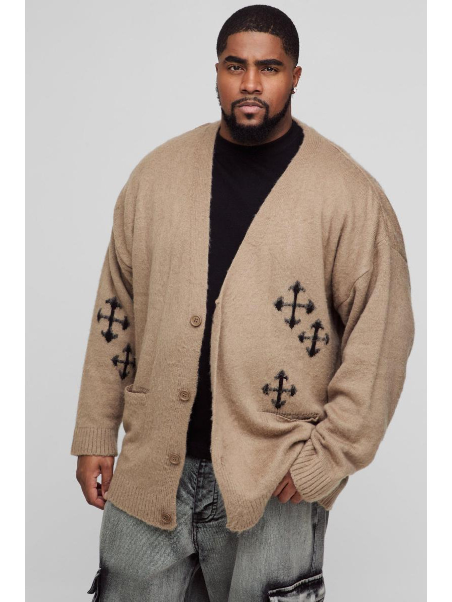 Плюс пухнастий в’язаний кардиган із готичною хрестовою аплікацією