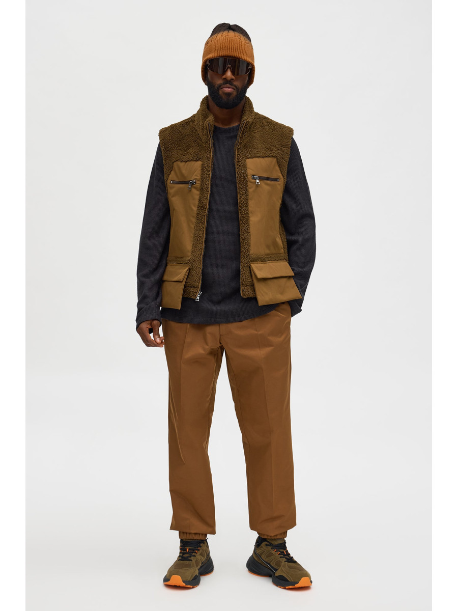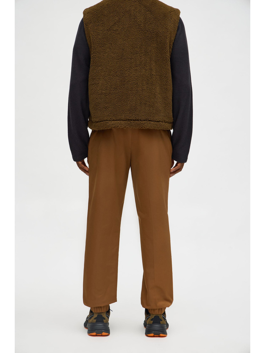 Приталений силует. Вишукані складки спереду. Застібка на ґудзики. Еластичні манжети на щиколотках. Склад: 100% поліестер. Імпортний товар.