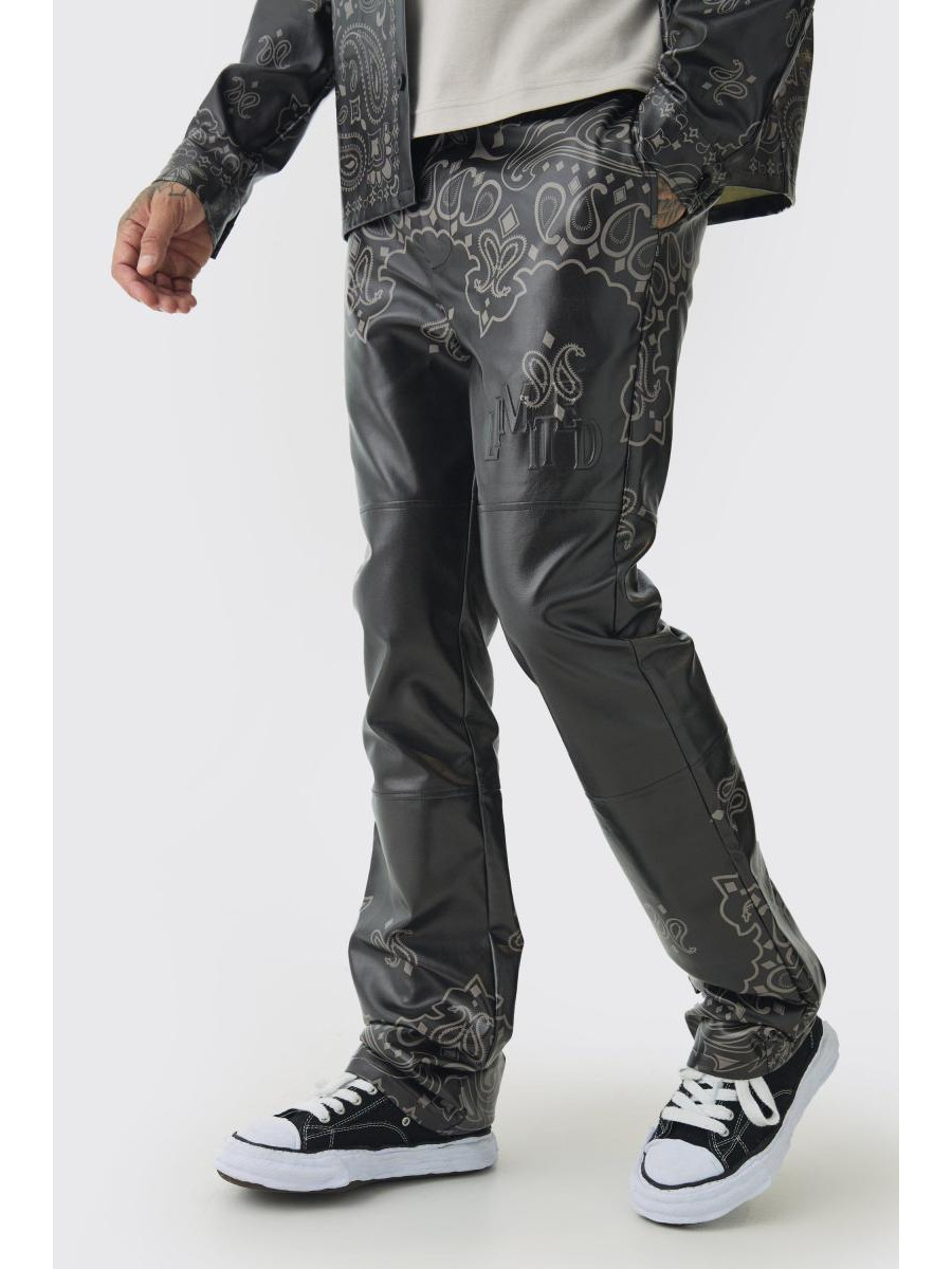 Високі чорні штани з поліуретанової бандани з кльошом і принтом