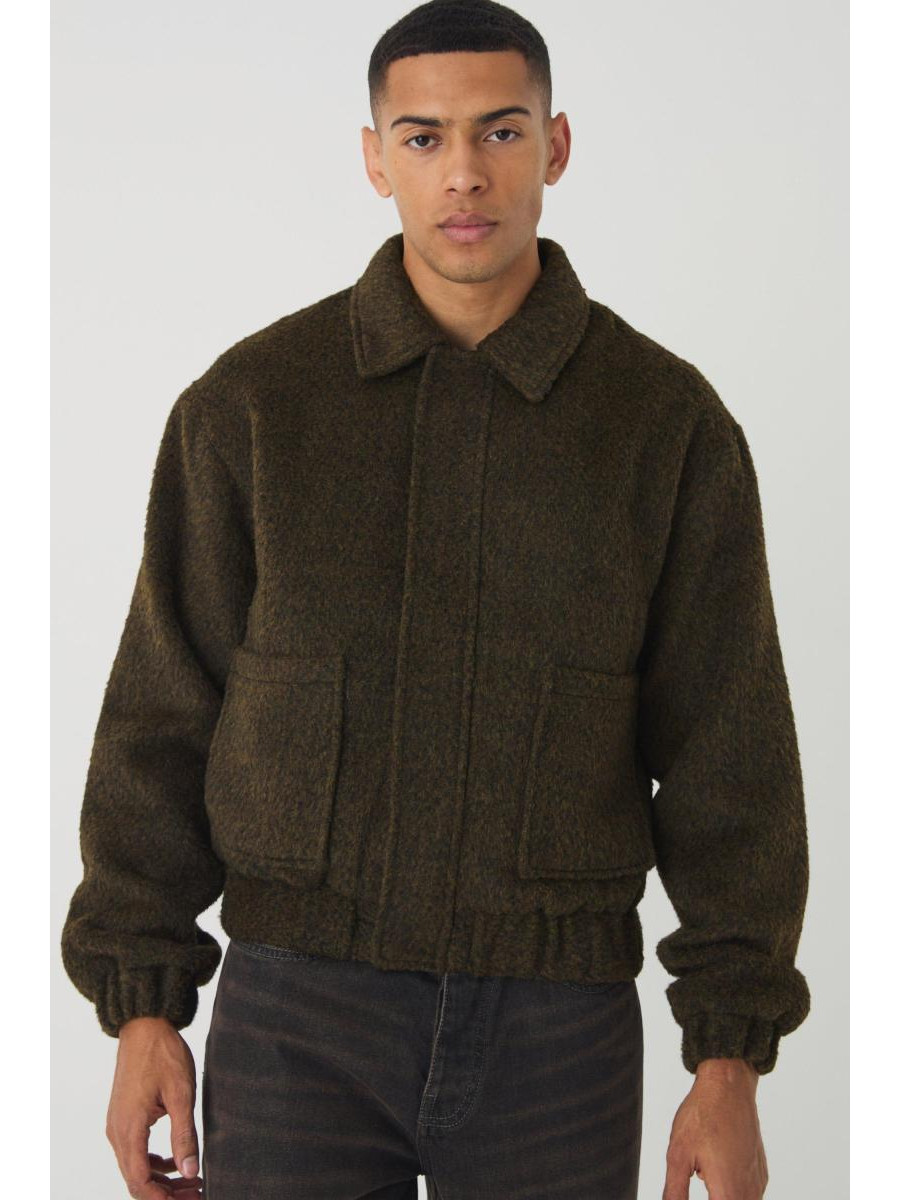 Жакет Харрінгтона з вичесаним вовняним виглядом і хакі