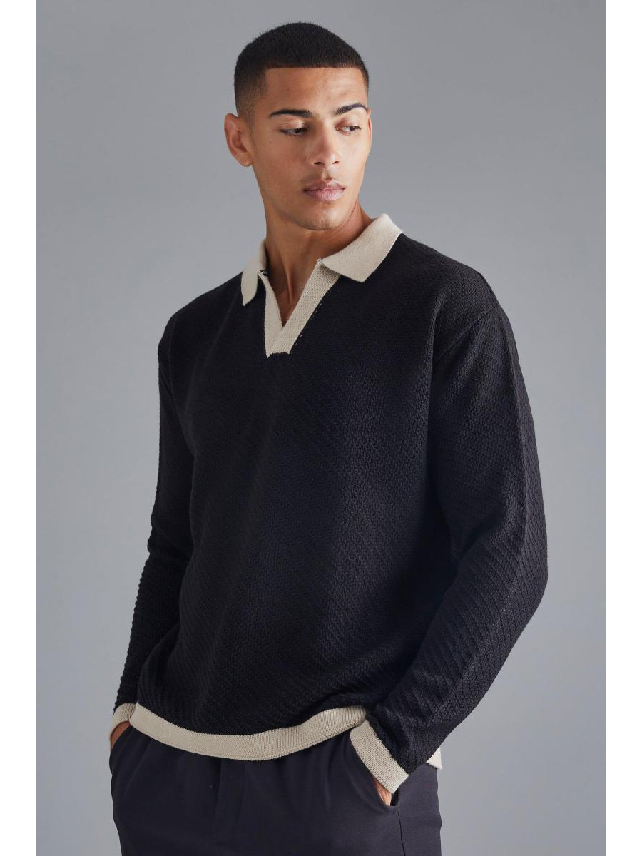 Трикотажне поло з довгими рукавами і контрастним коміром