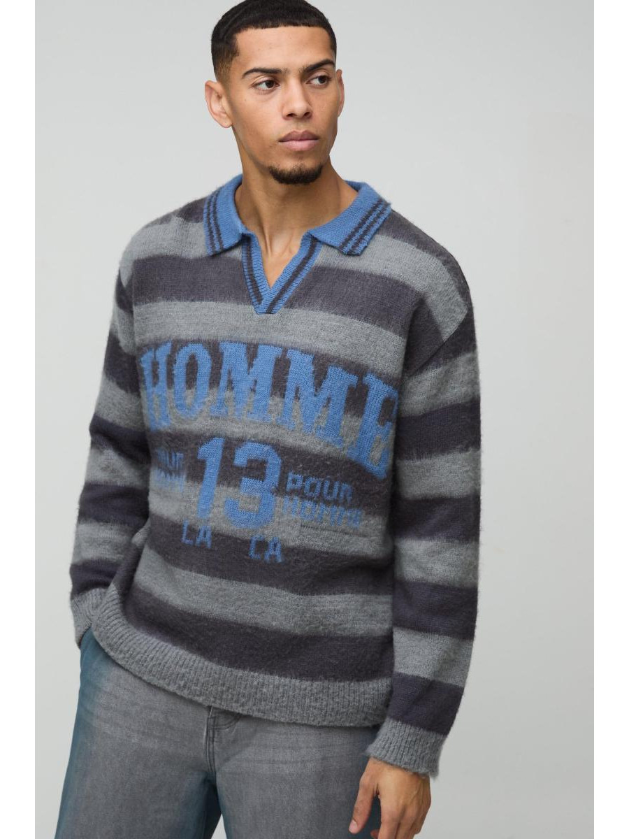 Велика трикотажна футболка-поло з V-подібним вирізом у смужку