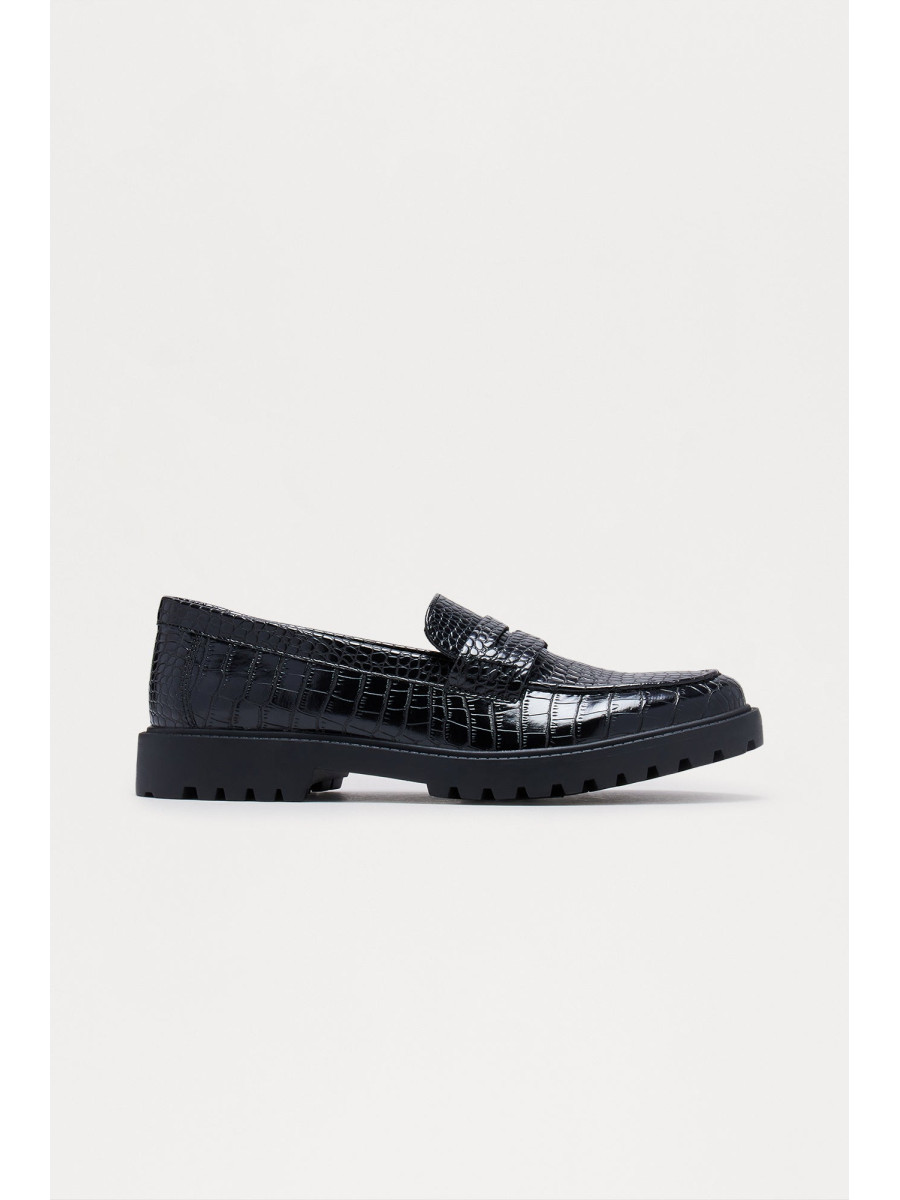 Стильні мокасини з текстурою під крокодила, виготовлені з м'якої еко-шкіри. Класичний дизайн без шнурівки, зручна устілка та гнучка підошва роблять цю модель ідеальною для повсякденного носіння. Міцна конструкція гарантує довговічність. Імпортна модель.