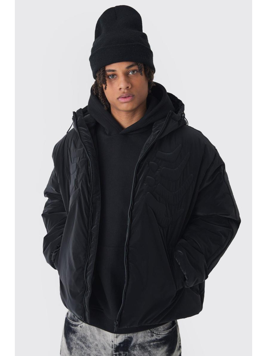 Чорне пальто з капюшоном і тисненням у формі скелета великого розміру