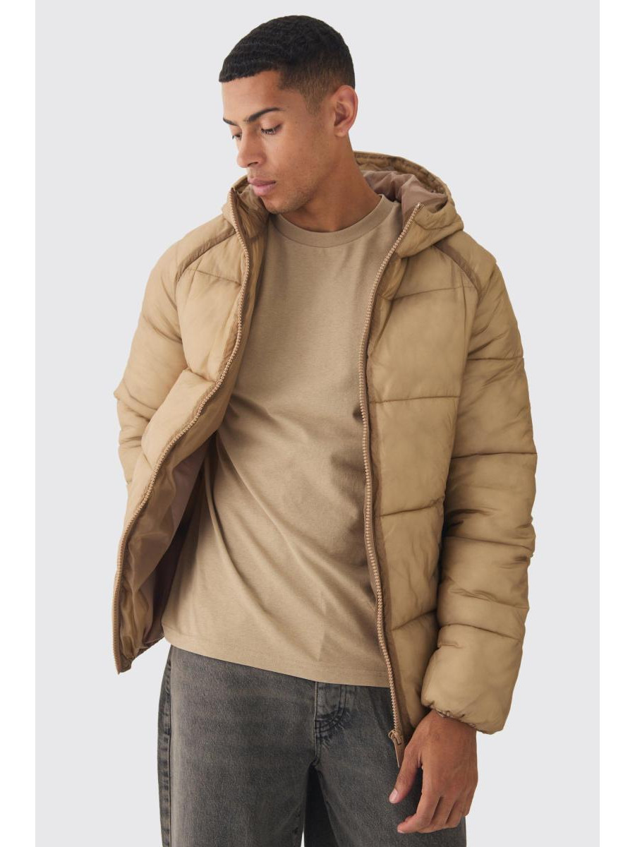 Верблюжа куртка-пуховик із випраними швами та капюшоном