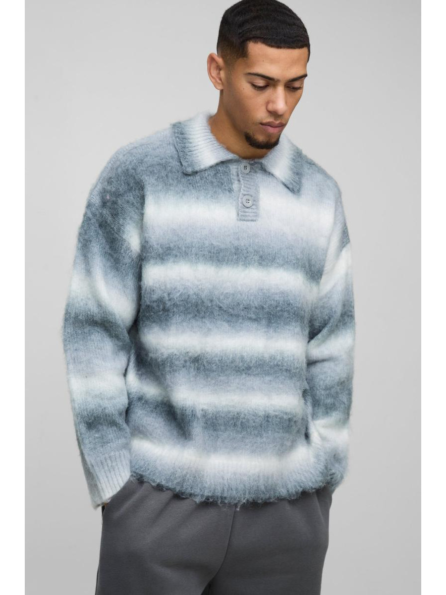 Негабаритний матовий смугастий в'язаний регбі -поло