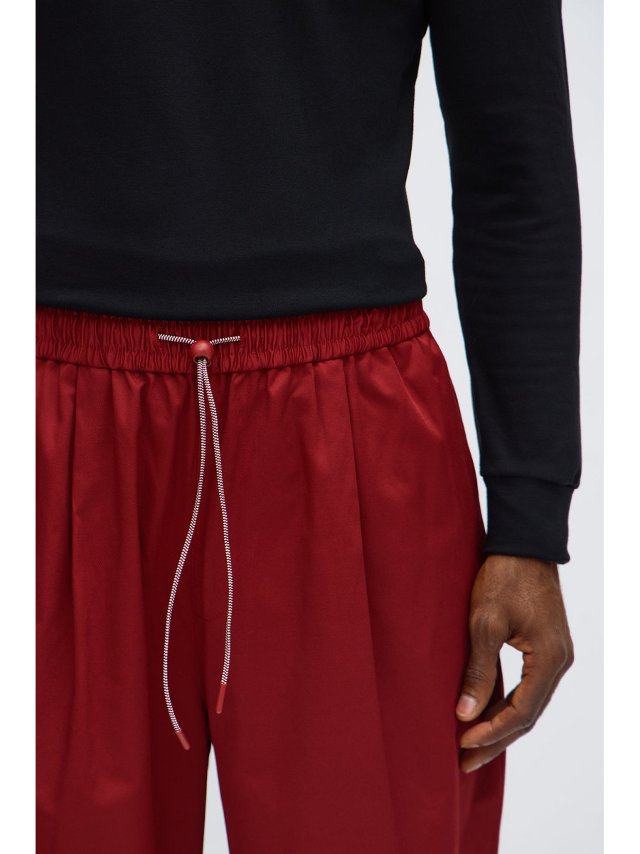 Вільний крій. Стильний елемент – ефект потертості збоку. Зручний пояс на шнурівці та еластичній резинці. Склад: 53% бавовна, 47% поліестер. Імпортний товар.