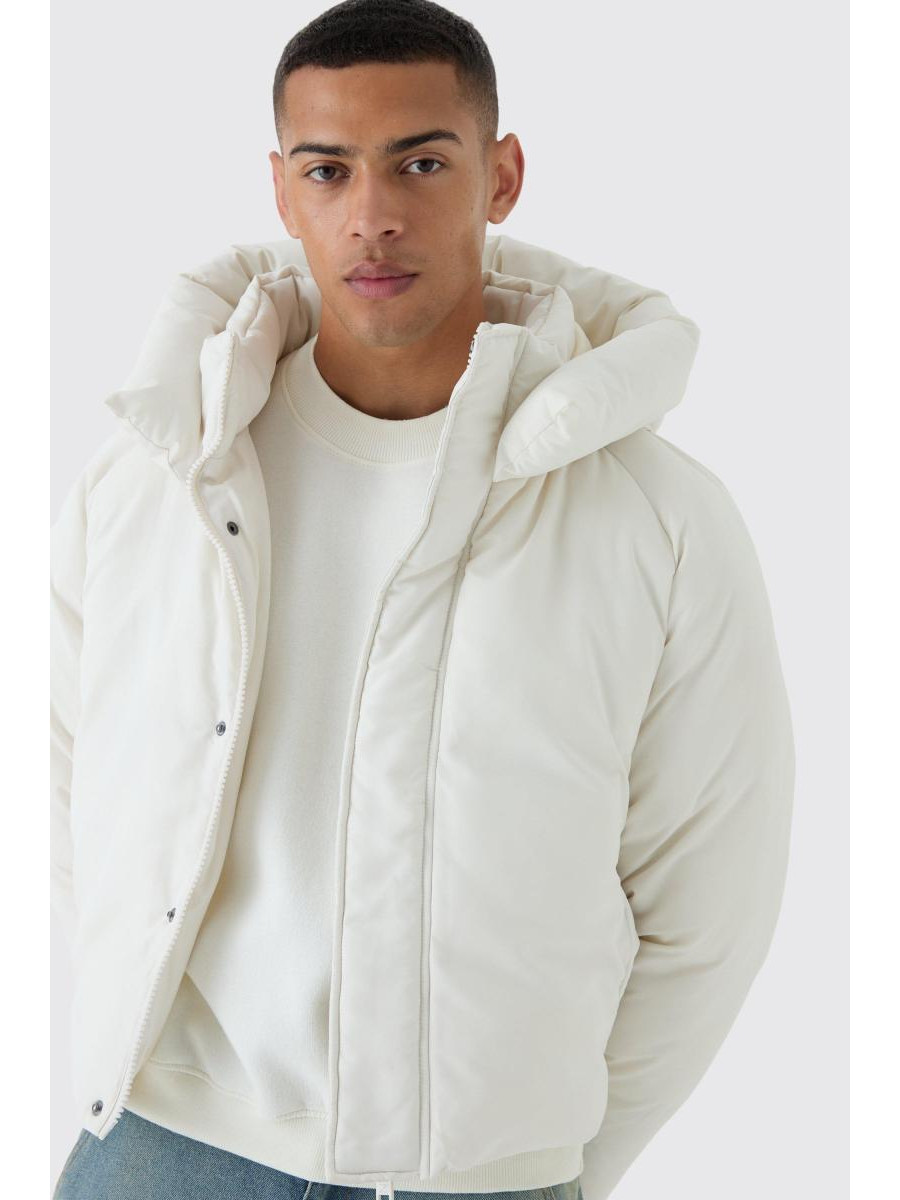 Плащовий пуховик реглан кольору екрю з капюшоном
